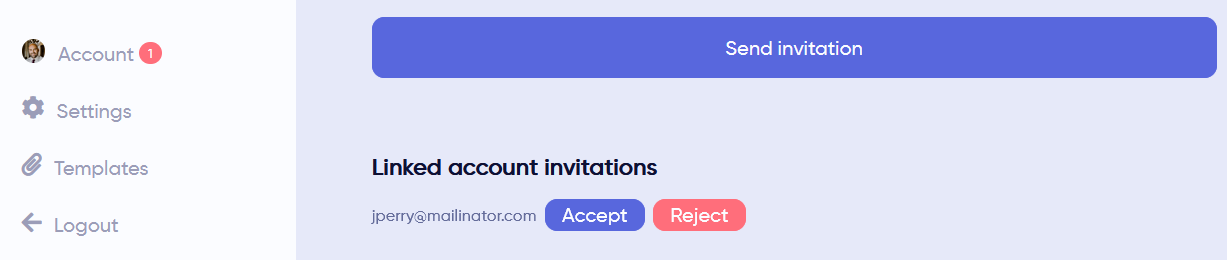 To link an account, type in the email address of the account. Then, click on Send Invitation.